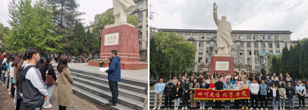 同学们来到毛主席像前,追忆毛主席伟大而光荣的一生。党委副书记肖波老师勉励同学们要传承红色基因,始终保持开拓进取、奋发有为的精气神,不忘初心、牢记使命。
