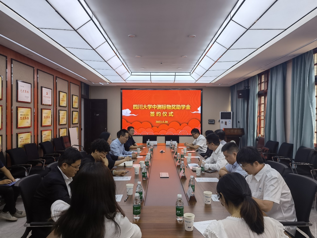 2022年5月20日,太阳集团2007“中测标物奖助学金”捐赠签约仪式在化学馆122会议室成功举行。中国测试技术研究院化学所首席专家方正、四川中测标物科技有限公司总经理杨嘉伟、常务副总经理聂巍、副总经理王显建、总工程师张鹏辉、党支部书记李璞,太阳集团2007教育基金会秘书长陈森,太阳集团2007化学公司党委书记谢均、党委副书记肖波、副经理马利建、汪秀丽教授、王健礼教授等参加了签约仪式。
