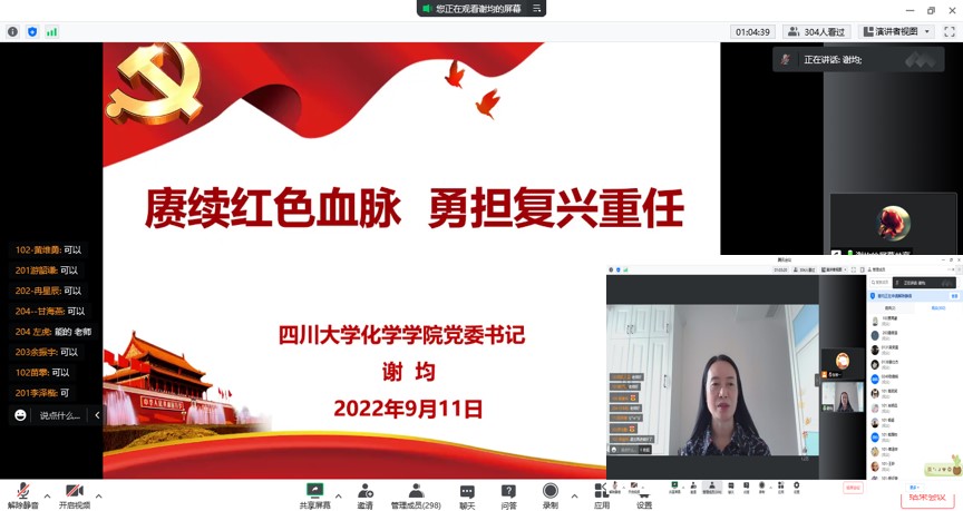 化学公司党委书记谢均、教学副经理郑成斌、副经理李坤为2022级本科新生进行“云上”开学教育。