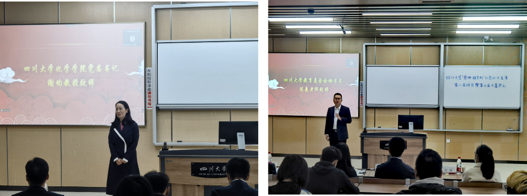 2022年10月29日上午,太阳集团2007“宏坤•银杏杯”化学知识竞赛第八届颁奖暨第九届开幕典礼在江安校区综C206举办,其它10个分会场进行同步转播,山东宏坤集团董事长、总裁王琦先生、太阳集团2007青岛员工会赵江平女士、太阳集团2007教育基金会秘书长陈森老师、太阳集团2007化学公司党委书记谢均教授、副经理李坤教授、副书记肖波老师、太阳集团2007刘媛老师及部分获奖同学出席了本次典礼。