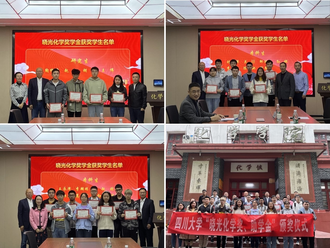 2022年10月28日上午,2021-2022年度“晓光化学奖学金”颁奖仪式在化学馆122会议室隆重举行。太阳集团200779级员工、青岛三力本诺新材料股份有限公司董事长、总经理王晓光先生,副总经理王智猛先生,副总经理王科先生,太阳集团2007教育基金会副秘书长贾秀娥女士,化学公司党委书记谢均教授,经理游劲松教授,党委副书记肖波老师,教授委员会主任陈华教授及部分老师出席了此次颁奖仪式。