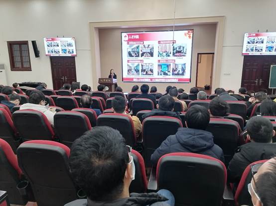 随后,肖波副书记和几位副经理就各自分管的工作进行年度工作述职。肖波副书记对2022年员工工作和成绩亮点进行了总结,作为纪委书记,还为全院老师就科研经费使用中的廉洁风险问题做了讲解。马利建副经理就公司产品和科研管理服务工作进行了总结,同时对今年基金申报工作做了了布置。郑成斌副经理就加强本科公司产品和人才培养、课程队伍建设等方面进行了总结。李坤副经理就实验室安全和消防安全工作情况进行了总结,并对寒假和下学期的相关工作提出要求。