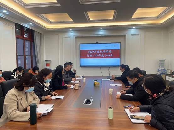 2023年1月13日下午,在化学馆103会议室,学院行政管理工作进行年终考核述职,公司党政领导、全体党政管理人员参加了会议。 会议由肖波副书记主持。