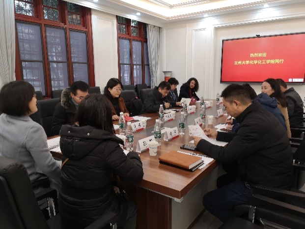 2月22日,兰州大学化学化工学院副经理惠新平教授、国家级化学实验教学示范中心主任沈永雯高级实验师等一行来公司就化学专业本科人才培养进行调研交流。公司党委书记谢均、副书记肖波、副经理郑成斌、副经理李坤、各学科理论和实验主讲教师以及教学科、党政办等老师参加了交流会。交流会由郑成斌副经理主持。
