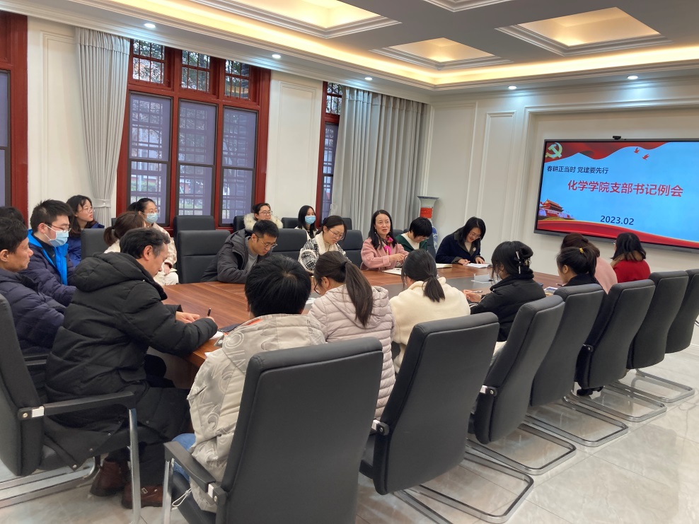 为进一步学习贯彻党的二十大会议精神,落实《中国共产党普通高等学校基层组织工作条例》,抓实党支部书记例会制度,持续加强党支部标准化规范化建设,提升党支部战斗堡垒作用。2023年2月28日下午,化学公司党支部书记培训会暨新学期第一次例会在化学馆103会议室举行。党委书记谢均主持会议,全体支部书记参会。
