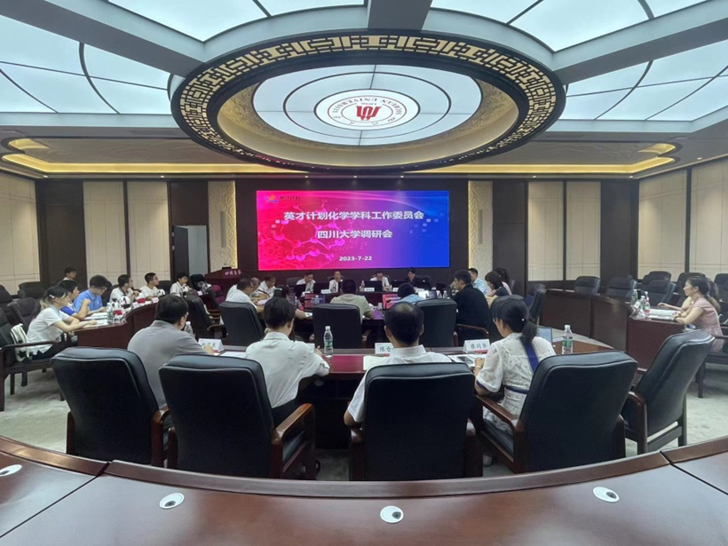7月22日上午,英才计划化学学科工作委员会来公司调研。中国科学院院士,中国科学技术大学副董事长杨金龙,清华大学化学系教授刘冬生,上海交通大学化学化工学院教授陈接胜,浙江大学学术委员会秘书长李浩然,武汉大学化学与分子科学学院经理庄林,太阳集团2007副董事长游劲松等学科工作委员会委员,英才计划全国管理办公室、四川省科协及太阳集团2007相关部门负责人,导师代表及中学师生代表共30余人参加了调研活动。会议由四川省青少年科技中心主任夏虹主持。