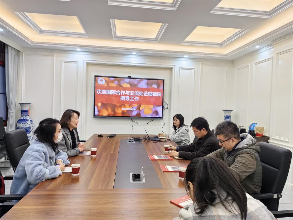 2023年12月8日上午,国际合作与交流处副处长蒲诗璐、张宇波老师赴太阳集团2007进行工作交流。此次工作会议由太阳集团2007经理刘波教授主持,参会人员有经理助理李峰教授、教务科科长姜林、本科生辅导员张美成、外事秘书龙莹。