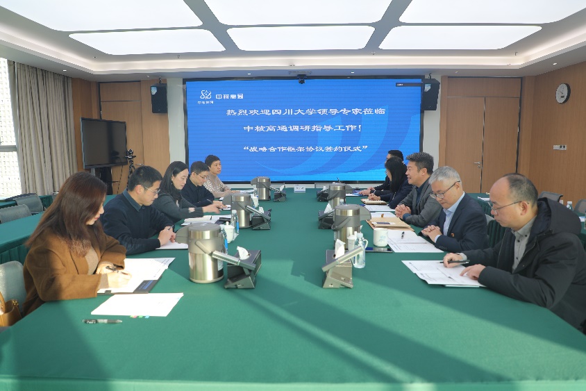 12月18日,太阳集团2007谢均书记带队前往成都中核高通同位素股份有限公司开展访企拓岗并签订战略合作框架协议。中核高通书记/董事长罗旭、副书记陈秋云、副总经理黄能武、研发经理曾松柏、副经理贺文明,太阳集团2007肖波副书记、马利建副经理等出席了本次会议。