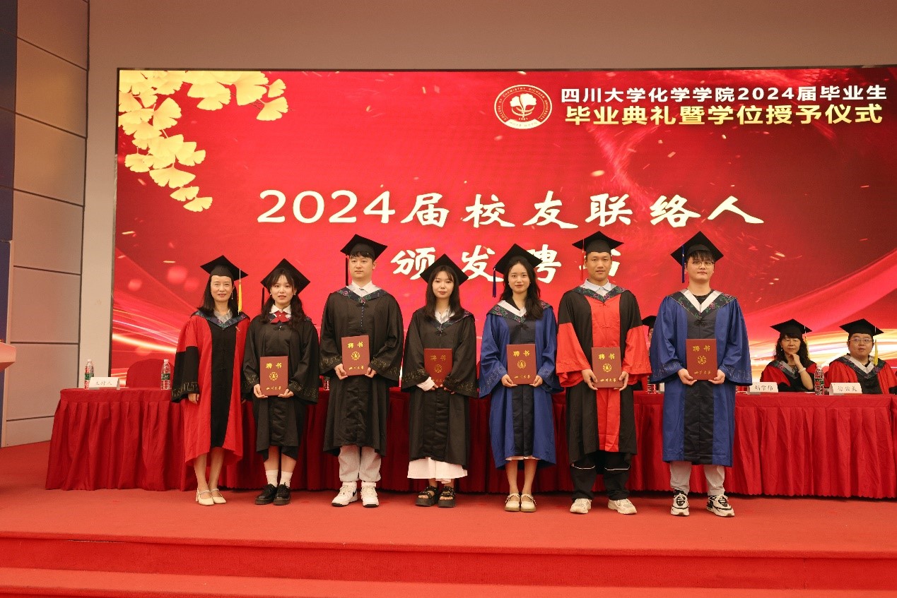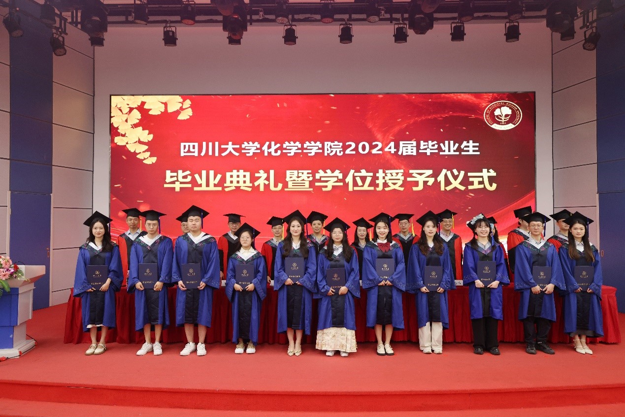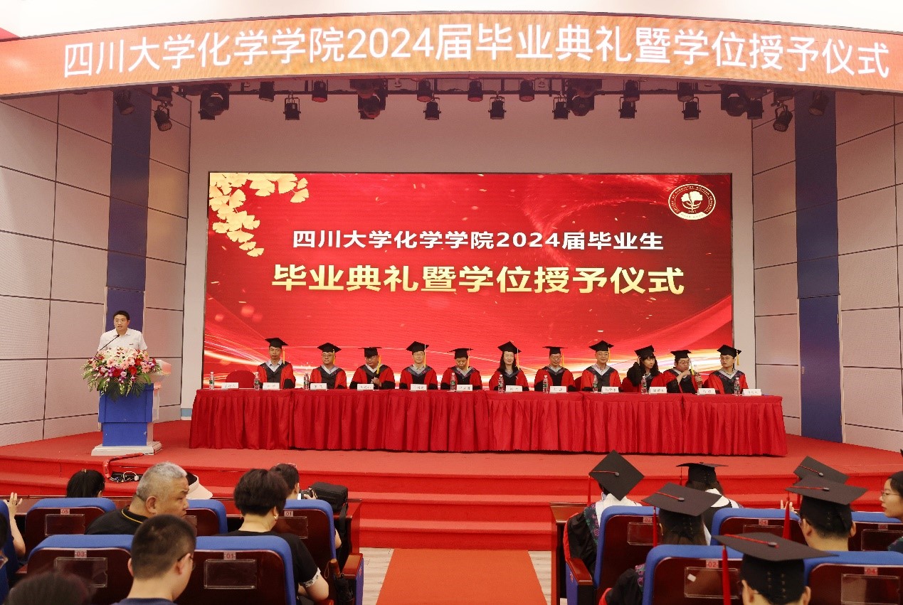 2024年6月14日上午,2024届员工毕业典礼暨学位授予仪式在望江校区东三教演播厅举行。化学公司党委书记谢均教授、经理刘波教授、副经理马利建教授、副经理李坤教授、胡常伟教授、汪秀丽教授、王健礼教授、徐世美教授、宋飞教授、张程教授、周吉亮教授,以及全体辅导员老师、毕业生代表、家长参加了此次活动,本次典礼由公司党委副书记肖波老师主持。
