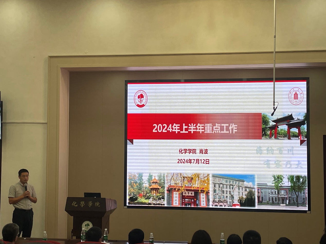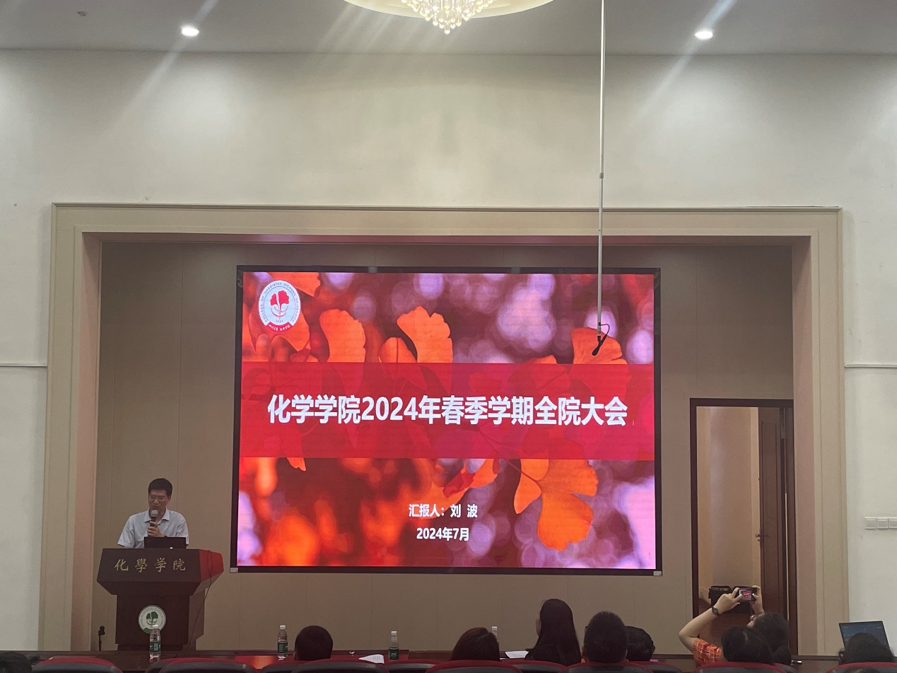 在全院大会上,刘波经理报告了学院在团队建设、人才队伍、员工培养、科学研究、管理服务等各项工作中取得的成效,并对推进化学学科进ESI万分之一学科的目标进行了重点的解读,对下一阶段人才引进工作做了布置,对暑期实验室安全工作提出了要求。