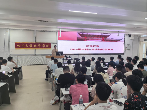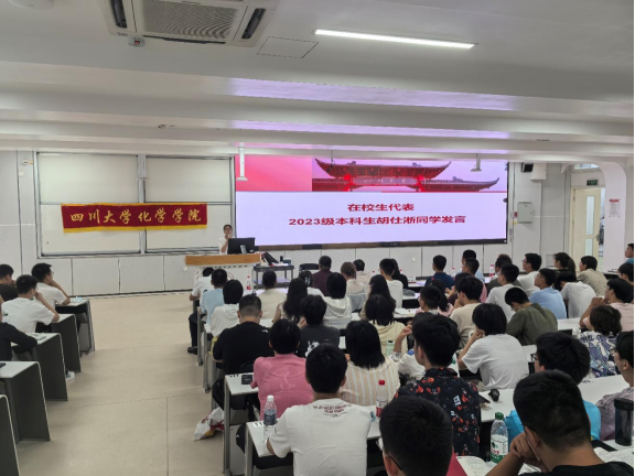 老生代表胡仕淅同学结合自己的学习经历,分享了如何在化学领域中找到兴趣和方向,以及如何平衡学习与生活的经验。他鼓励新生们要勇于提问,敢于挑战,积极参与到学术研究和各类竞赛中,锻炼自己的实践能力和创新思维。新生代表梁宇航同学则表达了对未来老员工活的期待和决心,表示将努力学习,积极探索,为化学科学的发展贡献自己的力量。