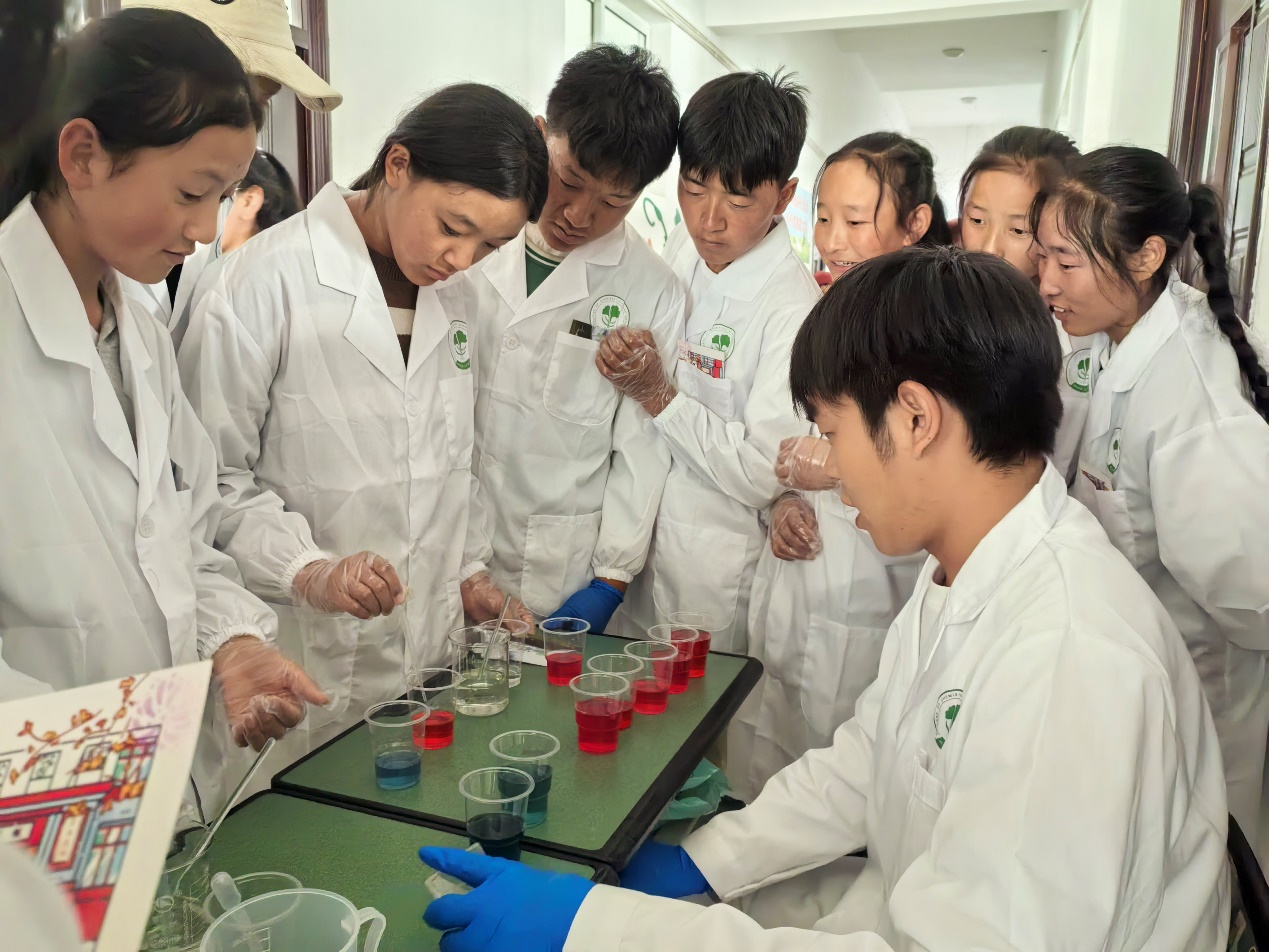 壤塘县中学员工进行“化学游园会”打卡挑战——酸碱魔法