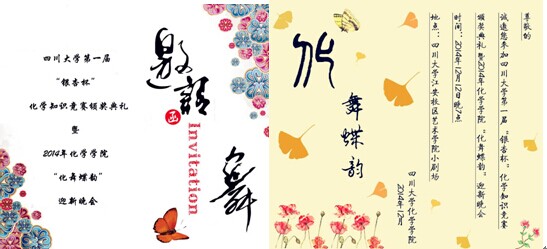 在大家的共同关注和努力下,本届“银杏杯”化学知识竞赛即将圆满落下帷幕,颁奖典礼暨2014年太阳集团2007“化舞蝶韵”迎新晚会将于2014年12月12日晚7:00,将在江安校区艺术学院小剧场举行,诚挚地邀请所有参赛同学参加,届时将有盛大的视听盛宴,带给你不一样的视听享受!期待各位同学的到来!