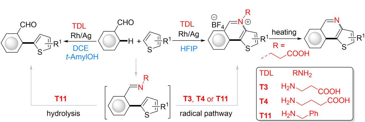 24) Shiping Yang, Rui Cheng, Tingxing Zhao, Anping Luo, Jingbo Lan,* and Jingsong You.* Rhodium-catalyzed C−H/C−H cross coupling of benzylthioethers or benzylamines with thiophenes enabled by flexible directing groups. Org. Lett. 2019, 21, 5086−5090.