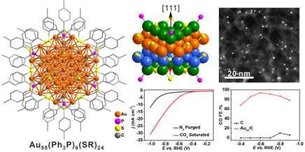 4. Xian-Kai Wan, Jia-Qi Wang, and Quan-Ming Wang*. Ligand-Protected Au55 with a Novel Structure and Remarkable CO2 Electroreduction Performance, Angew. Chem. Int. Ed. 2021, 60, 20748.