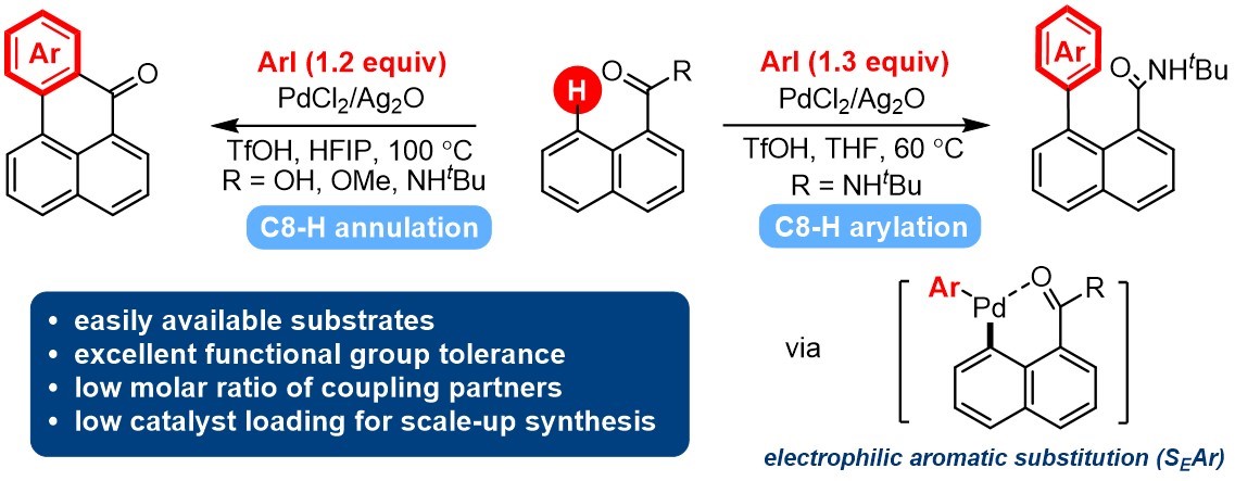 12. Palladium-catalyzed C8–H arylation and annulation of 1-naphthalene carboxylic acid derivatives with aryl iodides.