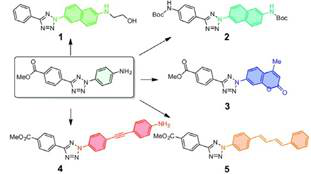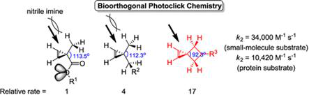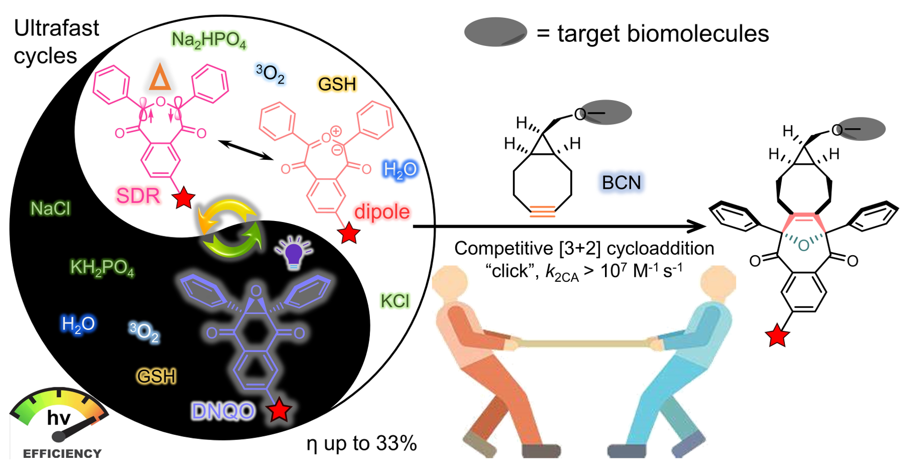 点击化学("click" chemistry)是诺贝尔化学奖得主Sharpless教授在2001年提出的一种快速共价偶联策略。 而"光点击"与"点击"化学的关系是青出于蓝,胜于蓝。它继承了点击反应的优点,同时也是受光激发,实现时空控制构建共价连接的化学利器。 在“光点击”化学反应中,利用直接光转化或者光催化策略,实现生物正交偶联的精准光控,达到亚细胞/单分子级别的时空精准度。采用环张力环融合策略,将“光点击”反应提高10倍以上的反应动力学。利用课题组原创的环偶氮亲偶极体,首次合成DBTD丙氨酸作为非天然氨基酸衍生物,并将其用于遗传密码扩展(GCE)编载重组蛋白质表达,实现超快速活体内蛋白质特定残基的荧光标记。这一系列创新研究,将推进“光点击”生物正交反应在活体动物中的靶标分子的跟踪和操控研究,起到了中流砥柱承前启后的作用。