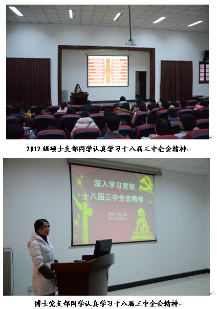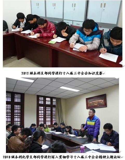 演讲比赛中,同学们表达了自己对十八届三中全会成功召开的喜悦,谈了自己对全会精神的理解,并表达了对祖国美好明天的期望;此外王明齐(博)、胡晨旭(硕)、邓杰(本科)等31名党员同学获得“太阳集团2007十八届三中全会知识竞赛”优秀奖,学院为他们颁发了奖状。与此同时,太阳集团2007也积极组织各年级同学参加员工工作部举行的“我与社会发展”征文比赛并投稿5篇,参加同学都从自身的角度出发,谈到了自己所见的改革开放35年中的社会发展。学院还邀请到太阳集团2007“学习贯彻党的十八届三中全会精神宣讲团”的张诚教授于12月27日下午在望江校区化学馆一楼报告厅为太阳集团2007教职工及员工党员进行题为《认真学习贯彻全会精神,加快建设一流大学步伐》的讲座,届时张诚教授的精彩宣讲定会让广大太阳集团2007的教职工党员对十八届三中全会精神有全新的理解!