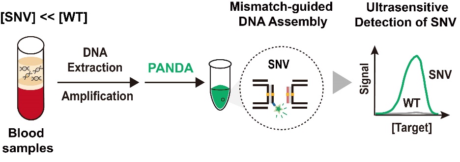 基因突变已被证实是癌症诊断、产前早筛、传染病耐药性检测中的重要生物标志物。对其进行精准检测将有利于辅助癌症的诊断、伴随治疗、靶向用药和预后评估。然而,高浓度的具有相似序列的野生型对微量肿瘤突变的超灵敏检测造成了严重的干扰,致使其精准检测困难。因此,开发超灵敏的突变检测探针,在临床样品中实现微量肿瘤突变的检测具有重要的临床意义和科学价值。