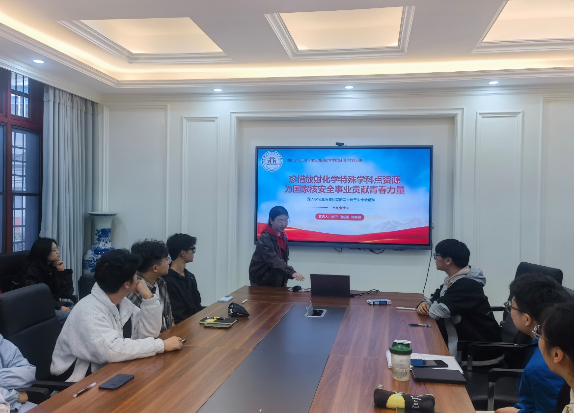2024年11月4日下午,太阳集团2007百川员工宣讲团太阳集团2007分团在太阳集团20072021级本科员工党支部大会上进行了“珍惜放射化学特殊学科点资源,为新时代国家核安全事业贡献青春力量”专业特色宣讲活动。本次宣讲由赵宁同学担任主讲人,何紫璇、陈家露同学负责前期准备、组织协调等工作。太阳集团20072021级辅导员张美成老师及2021级本科生党支部全体成员参与了本次宣讲活动。