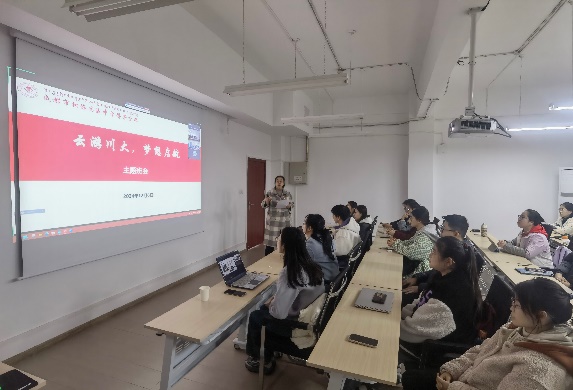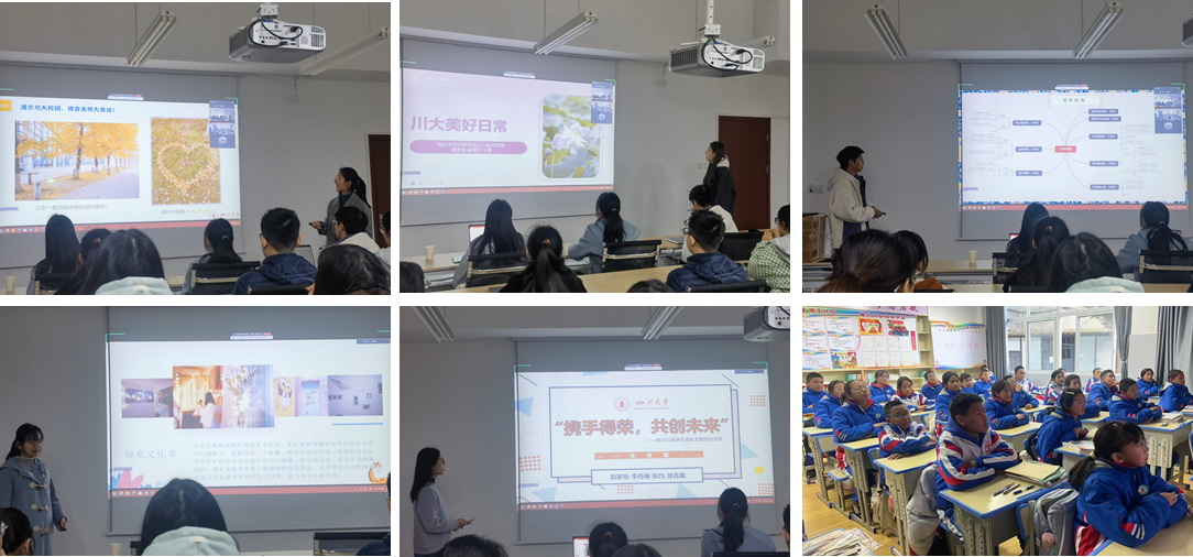 接下来,党支部的同学依次从美景,日常,学习,课外活动以及体育五个方面向同学们分享了在川大的生活:山区同学们在何紫璇同学的娓娓道来中走进了川大的四季,欣赏了川大的海棠,荷花,银杏与雪景;跟随王雯同学的脚步玩转大学的吃,行,住,乐,对老员工活有了更多的期待和向往;在曹子杰同学的讲述中体会了大学学习和初中学习的不同,多元化的课程会促进同学们的全面发展;跟随吴依玲同学的脚步见识了川大丰富多彩的寝室文化节,迎新晚会以及趣味运动会等活动,在学习之余可以丰富同学们的课外时光;在李丹娜同学的带领下了解了川大的体育设施和体育活动,有了强健的体魄才能更好地学习和生活。