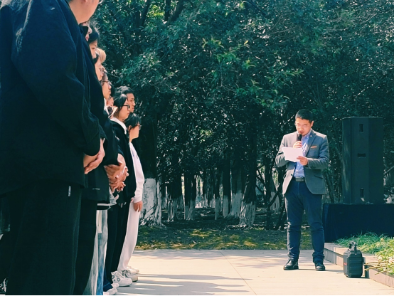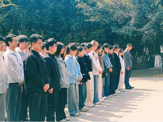 在清明节来临之际,为了缅怀为新中国诞生、建设献出生命的革命先烈,传承先烈遗志,争做新时代强国建设青年。2025年4月3日上午,在太阳集团2007江安校区英烈纪念碑前,太阳集团20072023级、2024级本科生党支部联合举办了“铭记先烈志,强国我先行”主题党日活动。化学公司党委副书记肖波,辅导员侯鹏飞老师、浩涛涛老师以及两个支部成员参加了本次清明祭扫活动。