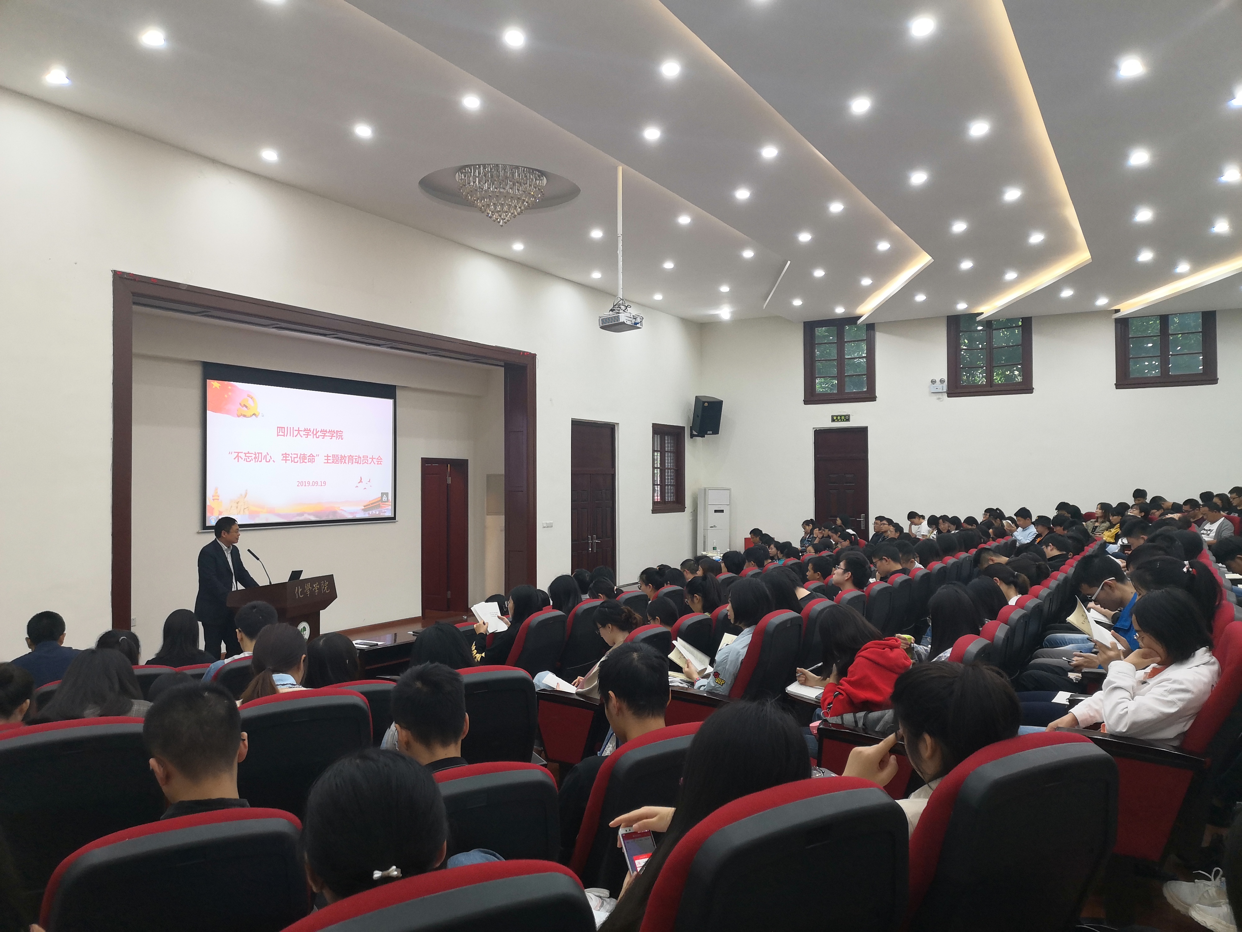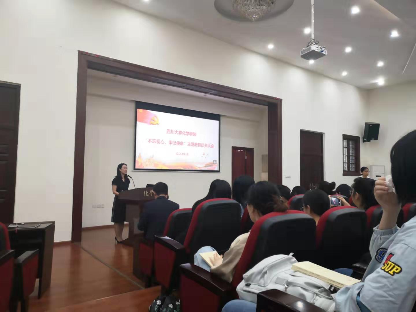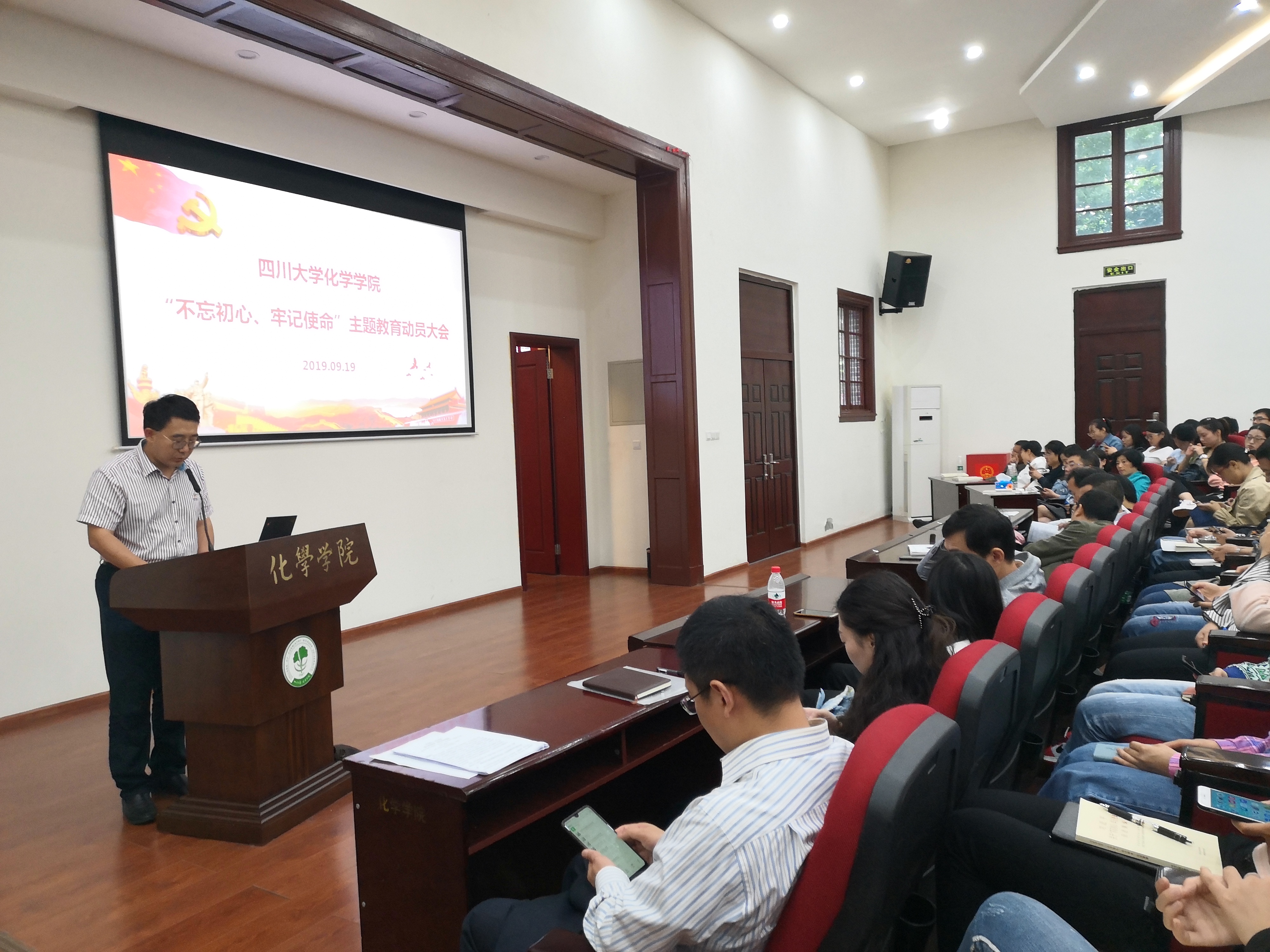 2019年9月19日,太阳集团2007在望江校区化学管321举行了“不忘初心,牢记使命”主题教育动员大会。学校第五指导组组长、研究生院副经理兼研究生工作部部长李栓久、组织部副部长管清贵、“双一流”及质量评估办公室尹怡副处长以及其他小组成员莅临了本次动员大会。