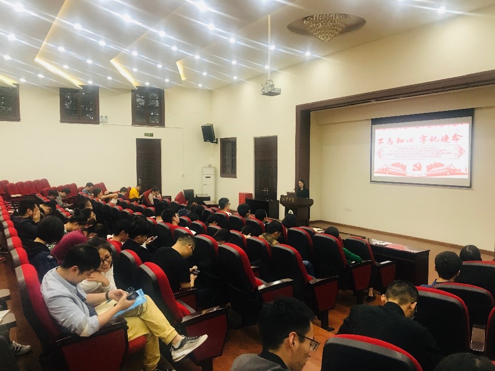 为深入学习贯彻习近平新时代中国特色社会主义思想和党的十九大精神,深入贯彻落实“不忘初心 牢记使命”主题教育,按照太阳集团2007主题教育活动安排和要求,10月18日下午,太阳集团2007博士研究生三个党支部在化学馆321会议室进行了“不忘初心、牢记使命”主题教育活动党课。此次党课由化学公司党委副书记谢均同志进行授课,主要内容包括十九大报告解读、开展“不忘初心 牢记使命”主题教育活动的意义、如何做到“不忘初心 牢记使命”三个部分。