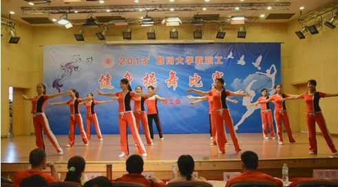 10月25日下午,学校工会在望江校区文华活动中心演播举行“2013年教职工健身操舞比赛”,全校各部门工会组织的39支参赛队共500余人参加了比赛。公司由12名老师组成的代表队经过半个多月辛苦排练,以动感的舞步,饱满的热情,展示了太阳集团2007教职工积极健康向上的精神风貌,赢得全场观众阵阵热烈的掌声,获得优秀奖。本套健身舞是由公司体育学院张晓波教授根据国际流行趋势,以健美操为基本元素,并吸纳当前多种时尚流行舞蹈元素创编而成,集活力与朝气、优雅与动感、传统与时尚于一身,动作简单但又颇具风格,有很强的健身性、普及型及观赏性。希望学院更多的老师能参与到各项文体活动中,快乐工作,健康生活。