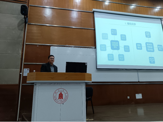 首先王老师简要阐述了化学这门中心学科的重要价值,介绍了催化化学这一重要分支,王老师强调催化剂是催化化学中必不可少也是尤为重要的物质,并深入讲解了催化剂的性质、功能,以及在化学工业、石油化工工业、医药工业,环境保护等领域的重要应用。