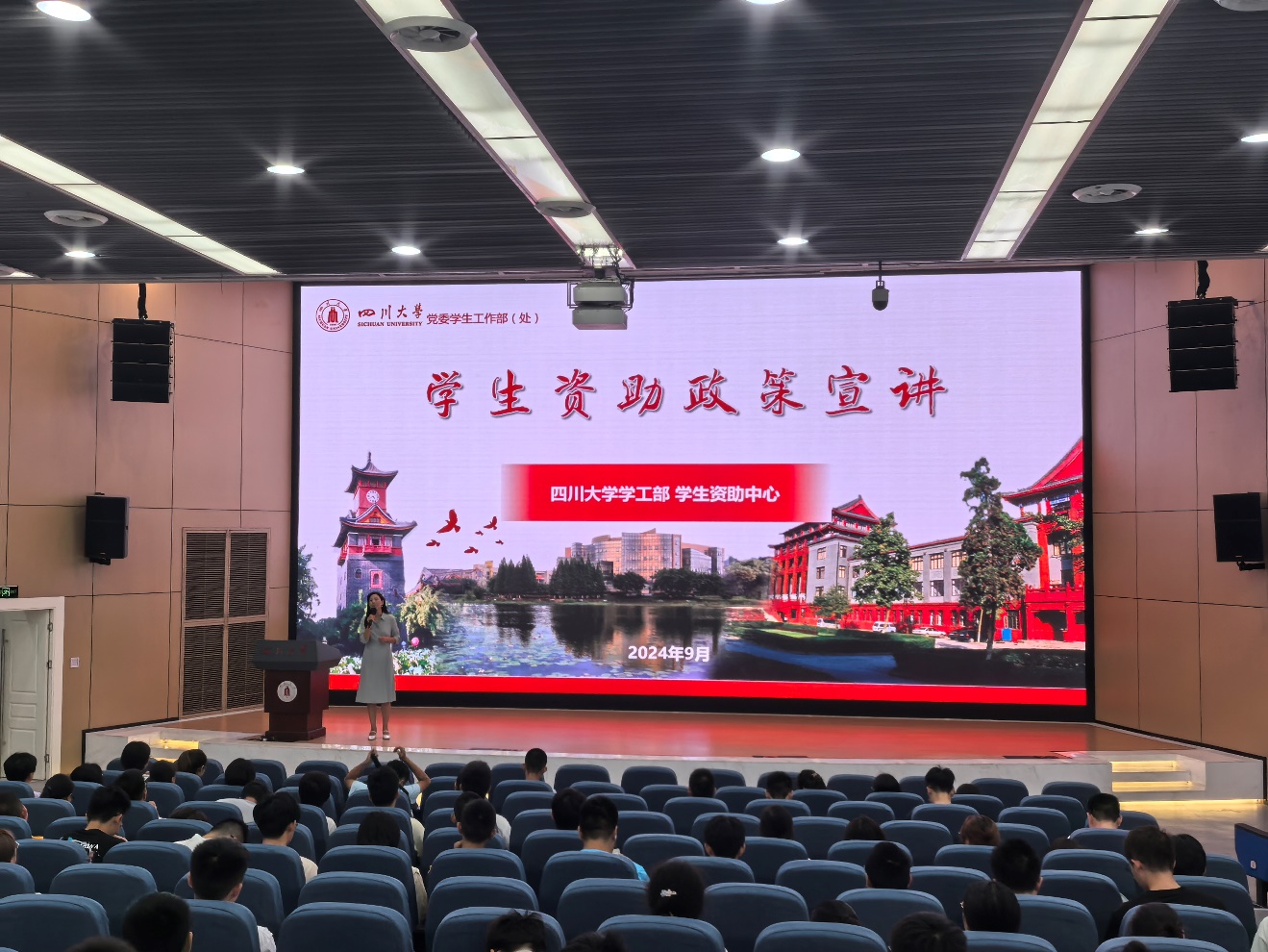 9月10日上午,太阳集团2007学工部资助中心王丽梅老师在江安校区水上报告厅为2024级本科生带来了关于“员工资助政策”的精彩宣讲。此次活动旨在让同学们更加深入地了解国家和学校为家庭经济困难员工提供的资助政策,确保每位员工都能享有公平的教育机会,不因经济压力而辍学。太阳集团2007辅导员侯鹏飞以及24级全体本科新生参加了此次讲座。