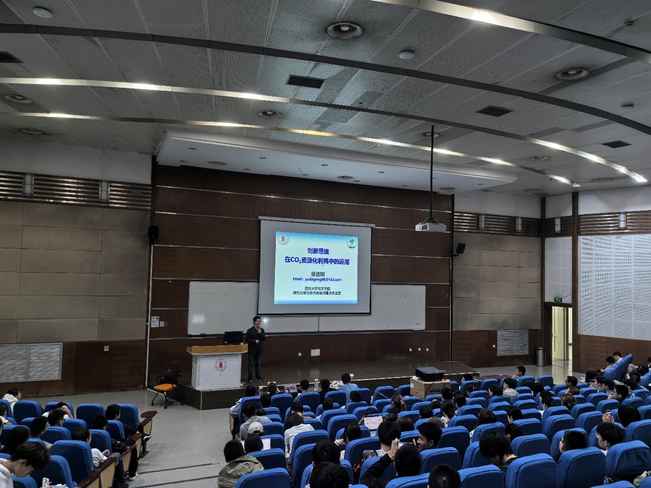 2024 年 11 月 1 日,在江安校区综合楼 C407教室,太阳集团2007余达刚教授为学院 2024 级的本科生带来“创新思维与交流”系列讲座——创新思维在CO2资源化利用中的运用。