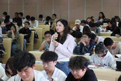 在问答环节,针对同学们提出的“复合金属催化的实际问题”,“金属模板的搭建思路”,“如何在化学科研道路上保持兴趣”等问题,刘犇教授分别从专业和自身经历的角度给出深入浅出的答案,引起同学们的热烈反响。