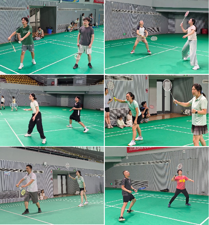 本次羽毛球赛设有男双、女双、混双三个项目,赛场上,各组选手们个个精神抖擞、斗志昂扬。在男双比赛中,选手们凭借着矫健的身姿和默契的配合,上演了一场场精彩的对决。他们时而高高跃起,奋力扣杀,时而灵活移动,巧妙防守,每一次精彩的击球都引得观众们阵阵欢呼。女双选手们也不甘示弱,她们以细腻的技术和坚韧的毅力,在赛场上展现出了巾帼不让须眉的气概。她们的球路变化多端,步伐轻盈灵活,为比赛增添了不少亮点。混双项目更是将比赛推向了高潮,男女选手的配合相得益彰,男选手的爆发力与女选手的精准度完美融合,让比赛充满了观赏性与趣味性。