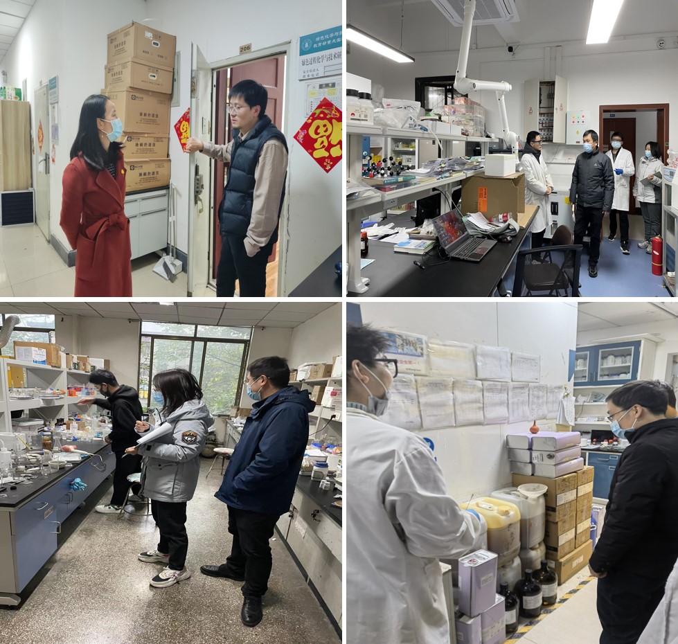12月1日学院领导带队分成四个小组,对学院各实验室进行了节前安全大检查。谢均书记带队重点检查了化材楼B座和化学馆,肖波副书记带队重点检查了第一理科楼1-3层,郑成斌副经理带队检查了第一理科楼4-6层,马利建副经理带队重点检查放化馆和化材楼A座。本次安全大检查着重排查了消防安全、用电安全、危险化学品储存使用、气瓶管理和公共卫生等问题,并对检查中发现的安全隐患做了详细记录,要求相关课题组立即整改。