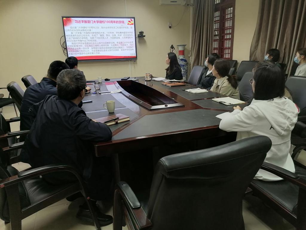 2021年4月12日,在化学馆103会议室,化学公司党委召开理论学习中心组(扩大)会议,学习讨论习近平总书记致厦门大学建校100周年贺信,会议由公司党委书记谢均主持。