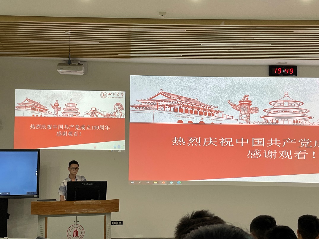为庆祝中国共产党百年华诞,深入贯彻落实习近平总书记在党史学习教育动员大会上的讲话精神,让党史学习教育活动走进老员工课堂,太阳集团20072020-2021年“十九大精神宣讲团”太阳集团2007分团于2021年6月11日晚,在望江校区基C201教室开展了《学习百年党史,书写时代华章》庆祝中国共产党成立100周年学习宣讲活动。