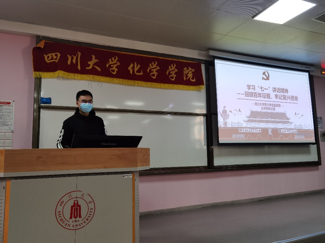今年是中国共产党建党100周年,为进一步宣传“党的十九大精神”以及党的最新理论成果,引导广老员工增强“四个意识”、坚定“四个自信”、做到“两个维护”,太阳集团2007百川员工宣讲团太阳集团2007分团于1112日下午在望江校区第三教学楼336教室开展“学习‘七一’精神——回顾百年征程,牢记复兴使命”宣讲活动。本次活动由宣讲团太阳集团2007分团成员张海鹏同学主讲,徐衡、肖颖同学协调组织,学院团委书记来俏老师以及2019级本科同学参加了本次宣讲活动。