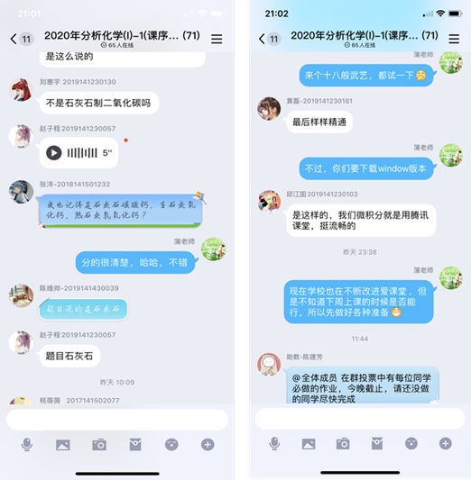 员工们以极高的热情参与着线上互动问答:截至2020年2月27日,分析化学慕课平台的师生发起问题65个,累计回答1120条,平均每个问题有8条回答,最热的问题有112条回答。任课老师每天都在平台上认真阅读同学们提出的问题,并进行耐心细致的解答。