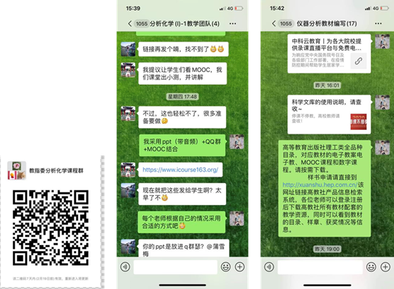 分析化学教学团队探索线上教学模式的一个创新是注重课程联动。蒲雪梅老师利用爱课堂网络平台将“分析化学”课程的回放链接、直播及录播课程和知识点答疑同时关联到QQ群里,避免了上课时网络拥堵对教学的影响,为员工打造了全天候的在线学习平台。随着本学期教学任务不断进行,教学团队期望这种课程联动方式能够带来不一样的教学效果。