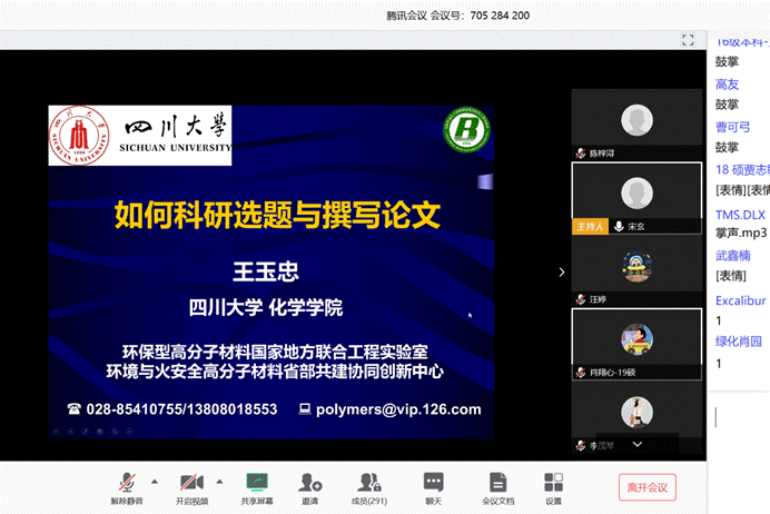 新型冠状病毒疫情的发生影响了公司员工和老师的正常返校,但没有影响老师和员工的工作和学习热情。为进一步提高公司员工的科研写作水平和学术创新能力,培养严谨务实的科研精神,2月18日上午10点,公司王玉忠院士作为一名老党员,把投身防控疫情第一线作为践行初心使命、体现责任担当的试金石和磨刀石,积极主动履职,有效发挥作用,通过“腾讯会议”网络平台开展了题为“如何进行科研选题与撰写学位论文”的专题讲座。尽管有约500人报名参加,但因会议平台的人数限制,有300名研究生和本科生有幸参加了本次讲座。