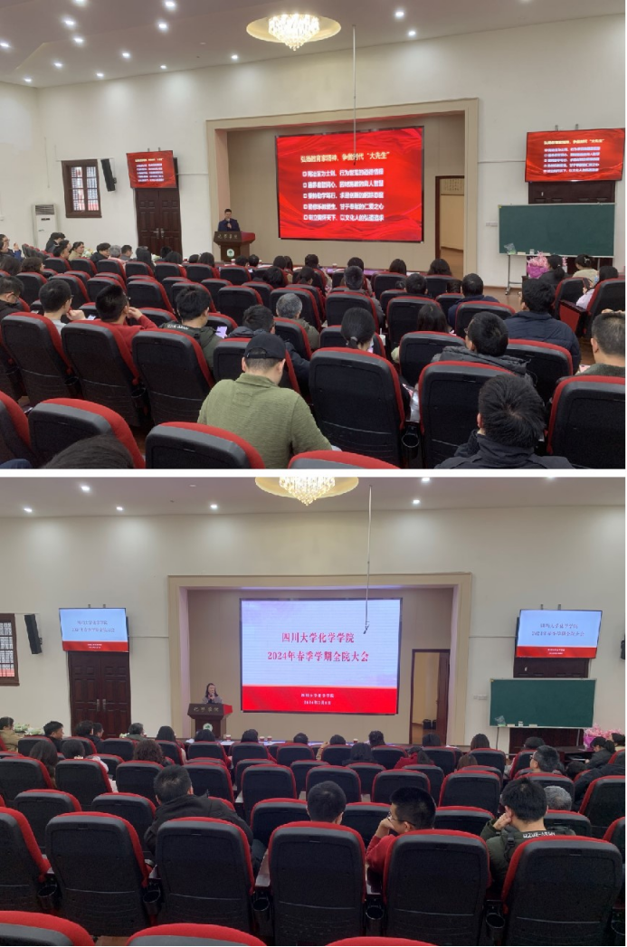 在全院大会上,刘波经理重点传达了学校2024年新学期工作布置会精神,结合学院实际,就2024年学校四项重点工作、贯彻落实学校九届三次全会“1+5”文件等的贯彻落实情况进行了传达。肖波副书记、马利建副经理、李坤副经理、李峰教授分别就学院员工工作、公司产品和科学研究、实验室安全、教学与人才培养等方面进行了工作安排。最后,谢均书记就学院整体工作推进作了安排部署,对公司党建工作,特别是“四川高公司党建工作标杆院系”创建、“三个一流”建设相关工作进行了详细布置。