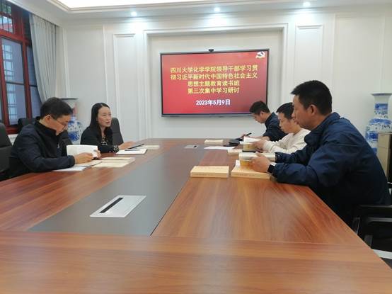 5月9日,公司领导干部学习贯彻习近平新时代中国特色社会主义思想主题教育读书班第三次集中研讨在化学馆103会议室举行。全体领导班子参加。研讨会由公司党委书记谢均主持。